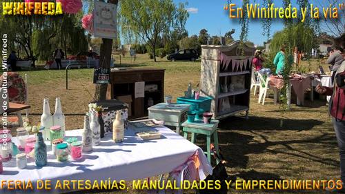 La Secretaría de Cultura comunal llevó a cabo hace unos días la primera feria de artesanías, manualidades y emprendimientos denominada “En Winifreda y la vía”, porque se realizó en los terrenos del ferrocarril y debajo de los andenes de la ex estación de trenes.