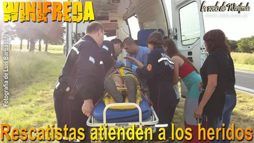 Al hombre le pusieron el collar de filadelfia, lo pusieron sobre la tabla y le dieron oxígeno. Luego, ambos fueron trasladados primero al centro asistencial de Winifreda y después al Lucio Molas de la ciudad capital. Los profesionales constataron que no presentaban heridas de gravedad pese a los golpes recibidos y fueron dados de alta.