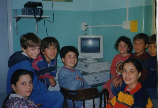 Una foto de los alumnos de 1994, cuando la escuela recibió la primera computadora.