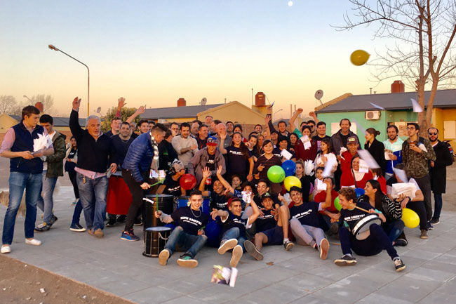 Con una murga, globos y folletería, tocaron timbres y repartieron las boletas de los candidatos a los pampeanos, charlando y escuchando a los vecinos.