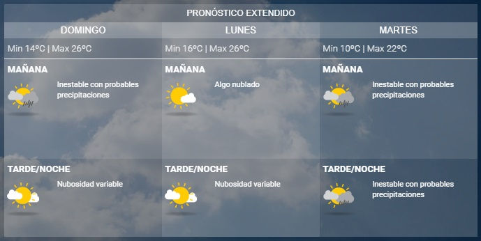 Según el SMN, para el día de hoy (sábado 16) se espera nubosidad variable con probabilidad de lluvias y tormentas aisladas, mejorando, con vientos leves del sector este, rotando al sector norte. El período de inestabilidad podría llegar hasta el inicio de la semana que viene.