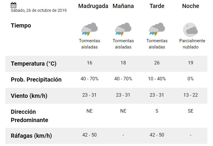Para mañana, sábado 26, se incrementa la probabilidad de precipitación hasta un 70%, que en caso de llover, mermaría en horas de la tarde.