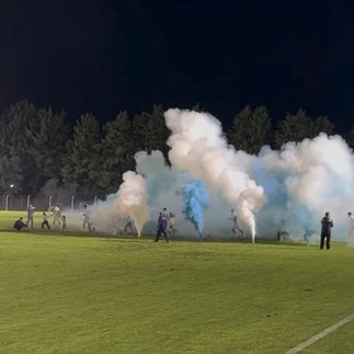 El ingreso del equipo fue acompañado por una manga de humo celeste y blanco, en un clima de expectativa que se transformó rápidamente en festejo.