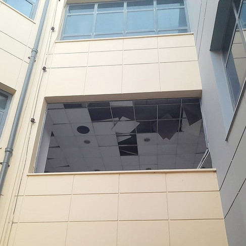 El temporal no distinguió entre viviendas particulares e instituciones. La Escuela Nº 27 del barrio Butaló sufrió daños estructurales, mientras que el Club Estudiantes padeció la caída de un paredón y roturas en la estructura de su cancha de básquet.